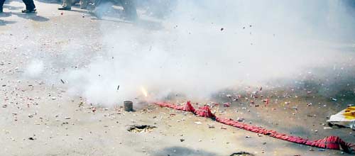 when I see them bursting a long line of fire crackers - a wire of 100. My ears